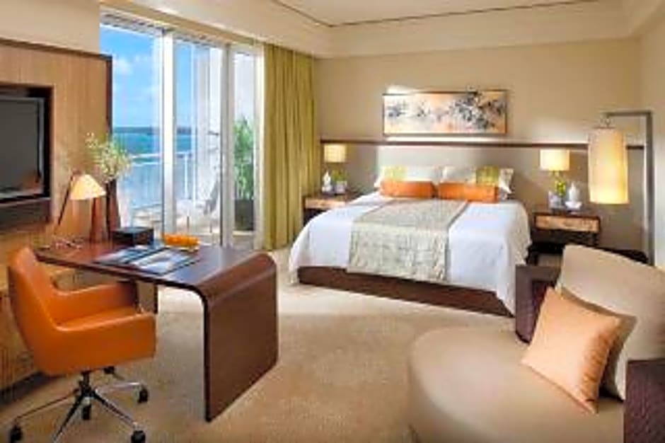 Located between levels 6 and 20, this room features a private balcony with a view of the Miami skyline and Biscayne Bay. Floor-to-ceiling windows and a marble bathroom with a walk-in shower and bathtub are also featured.