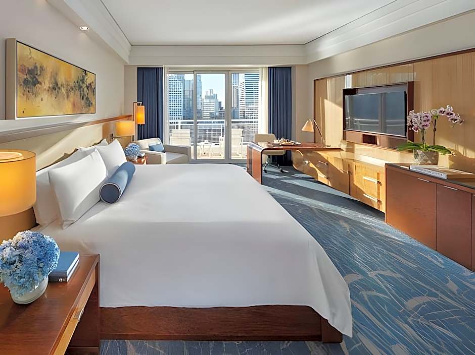 Located between levels 7 and 20, this room features a balcony with a view of the Miami skyline and Biscayne Bay. A work desk and marble bathroom with a bathtub and glass walk-in shower are also included.
